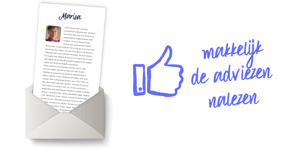 Ik garandeer je dat je een gedegen advies op maat krijgt, speciaal voor jouw issue uitgeschreven, en dat je ermee aan de slag kunt om je probleem daadwerkelijk op te lossen. Dus geen zweverig gedoe en vage opmerkingen, maar helder inzicht zodat je je probleem in een nieuw licht ziet + praktisch advies wat je meteen dezelfde dag in kunt zetten.